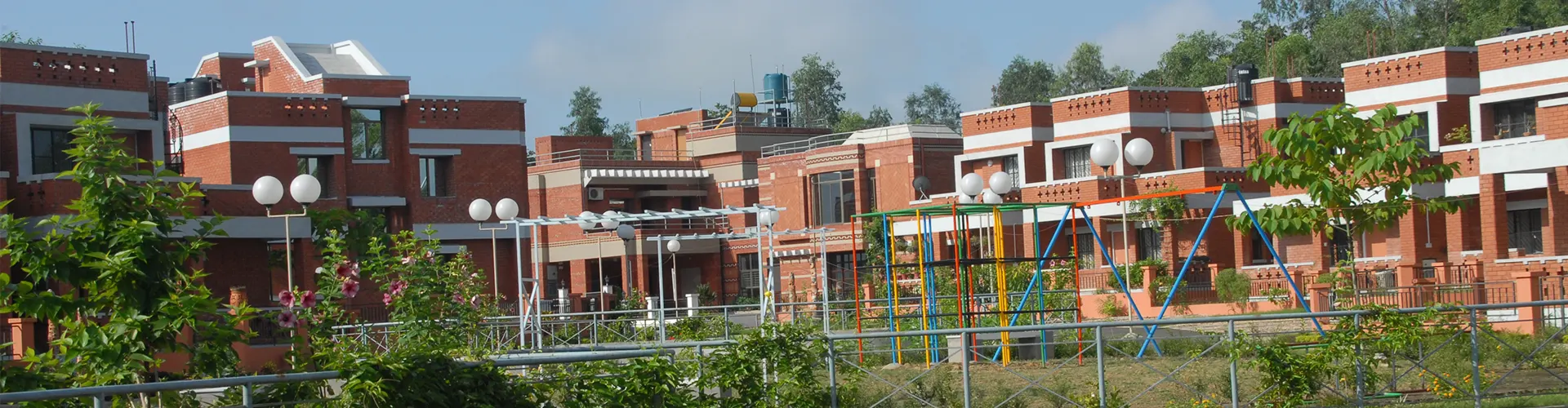 The residences are conceived as independent floor units, where ground-floor homes open into private gardens, and first-floor homes enjoy spacious open terraces. The double-storied terracotta tile-clad structures harmonize perfectly with the lush, curated landscape of flowering and fruit-bearing trees.